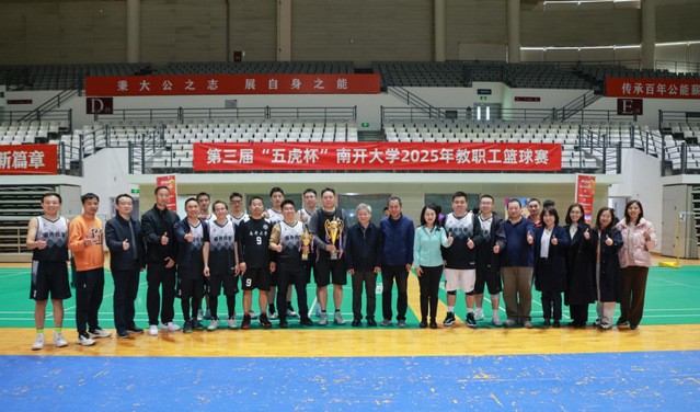11月13日,为期近一个月的第三届“五虎杯”南开大学2025年教职工篮球赛在八里台体育馆落下帷幕。化学学院代表队摘得总冠军桂冠。