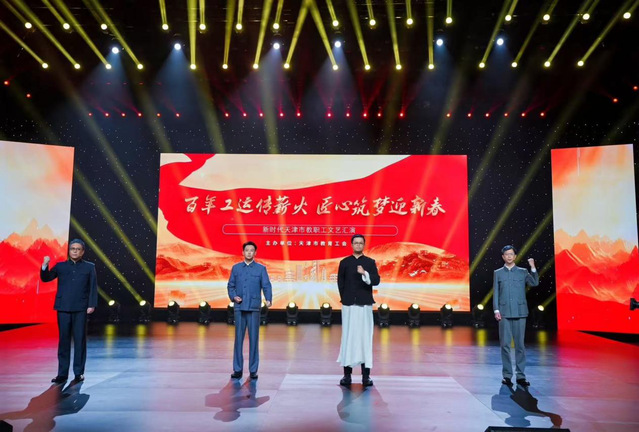 12月12日,天津市教职工文艺汇演现场掌声雷动,南开大学教职工代表带来的节目《青春奋进 强国担当——“爱国三问”时空回响》以深刻的精神内涵与精湛的艺术呈现,生动诠释了南开人代代相传的爱国情怀与时代担当。
